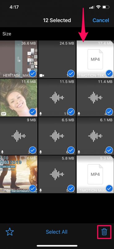 7. Next, just tap on the media items to select them and once you’re done, tap on the trashcan icon at the bottom-right corner.