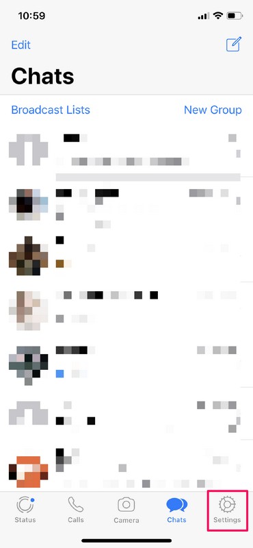 1. Once you open the app, you’ll be taken to the chat section. Tap on “Settings” located right next to the chat icon at the bottom of the screen.