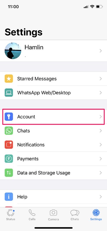 2. Now, simply tap on “Account” to head over to your WhatsApp account settings.