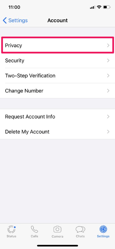 3. Once you’re in the Account section within settings, tap on “Privacy”.