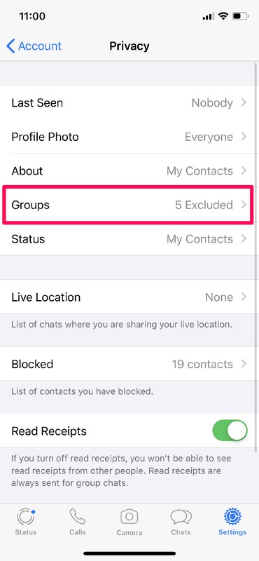 4. Here, you’ll see the new group privacy setting located along with existing privacy options for Last Seen, Profile Photo and more. Just tap on “Groups” to proceed to the next step.