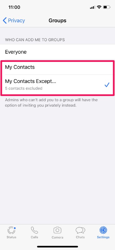 5. There are three privacy options for Groups, but considering you want to stop random people from adding you to groups, you could choose between your contacts or even blacklist specific people in your contacts list if they’re adding you back to a group you don’t want to be a part of.
