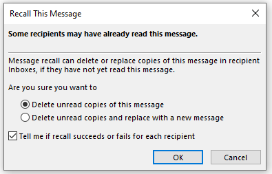 Click Delete unread copies of this message or Delete unread copies and replace with a new message, and then click OK.